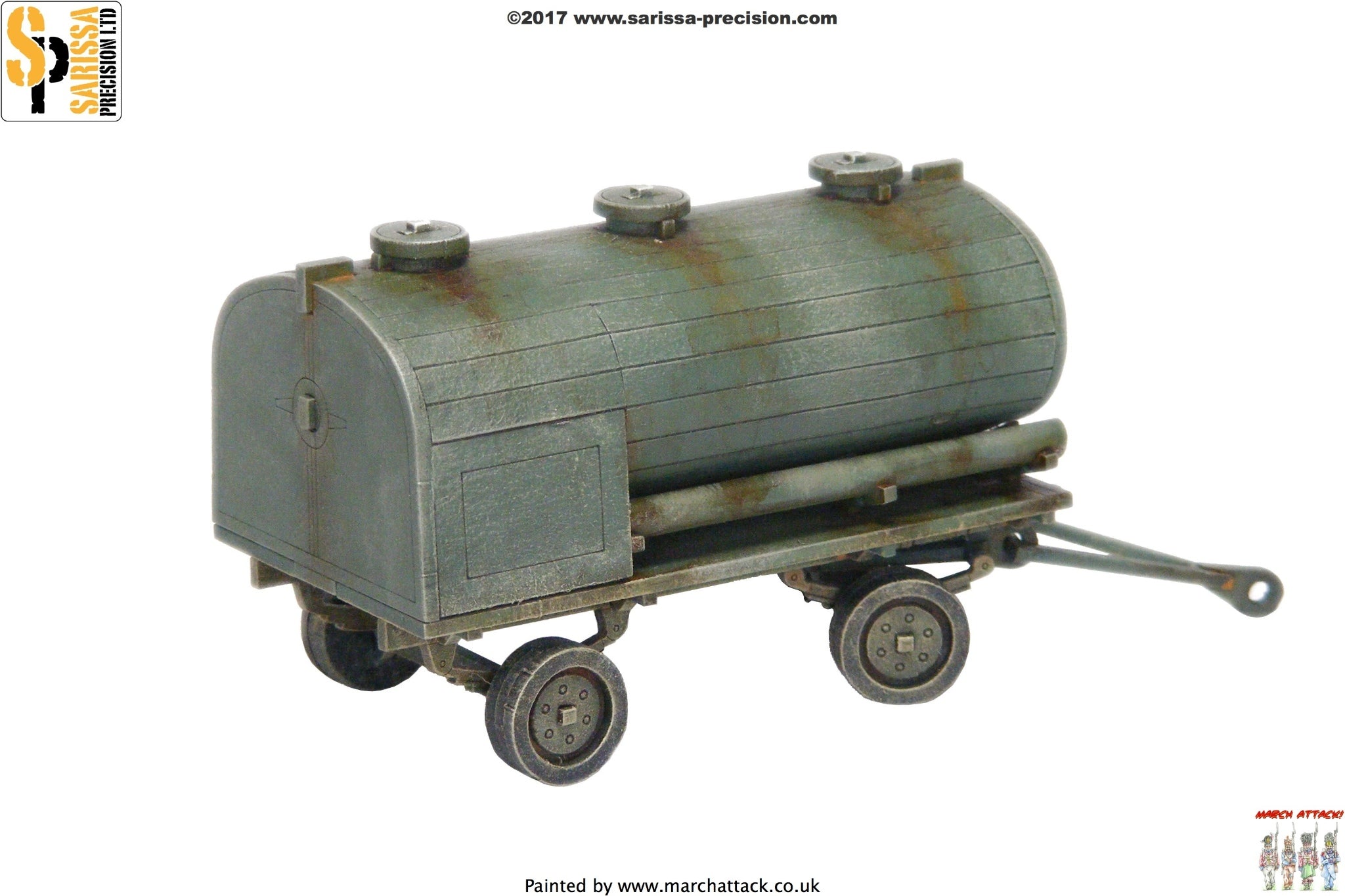 These towable water bowsers were used extensively by WWII combatants, offering a portable solution for water on demand. Supplied unassembled and unpainted in kit form with full instructions. Any models or accessories shown are for scale purposes only and are not included. |