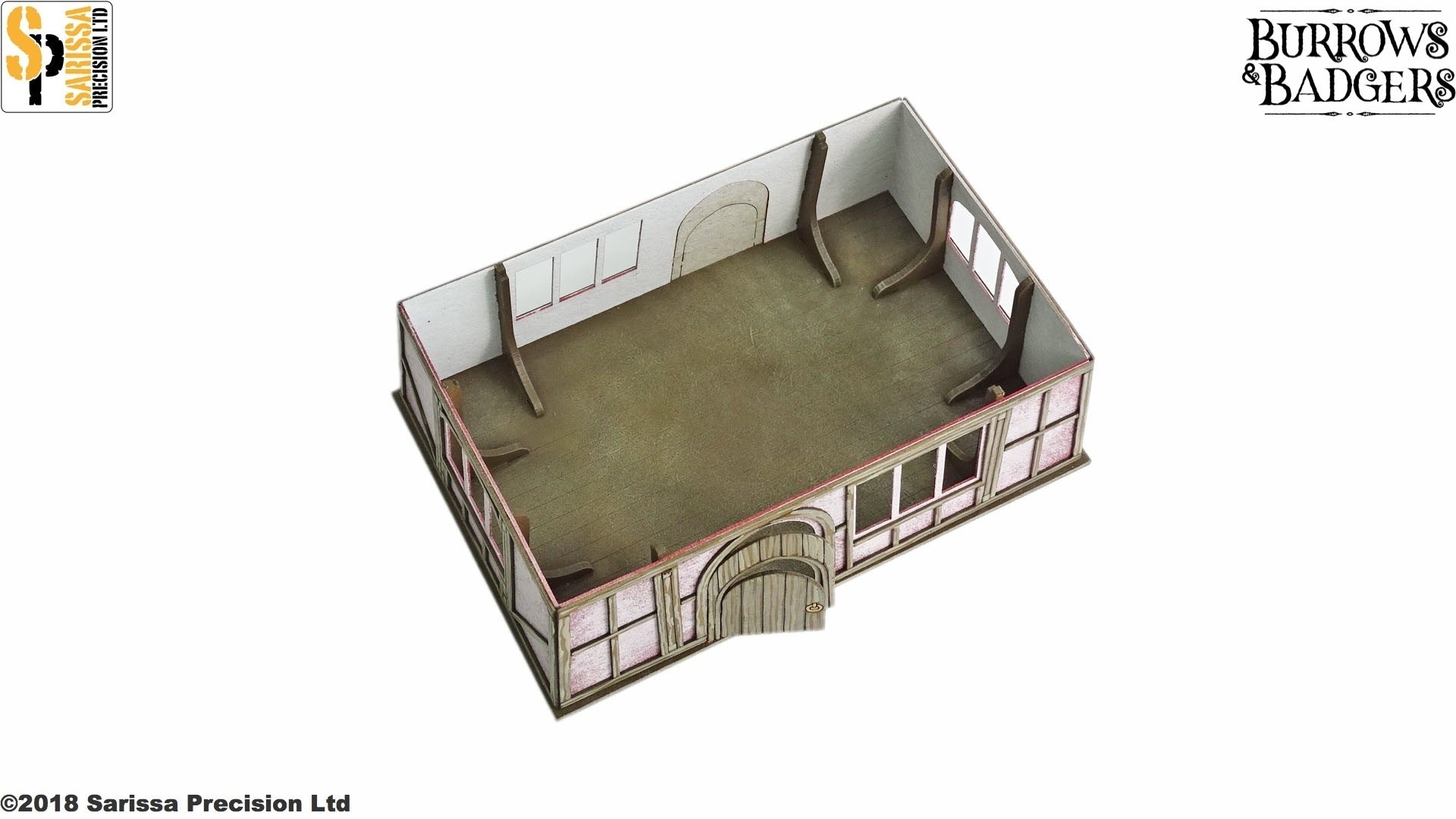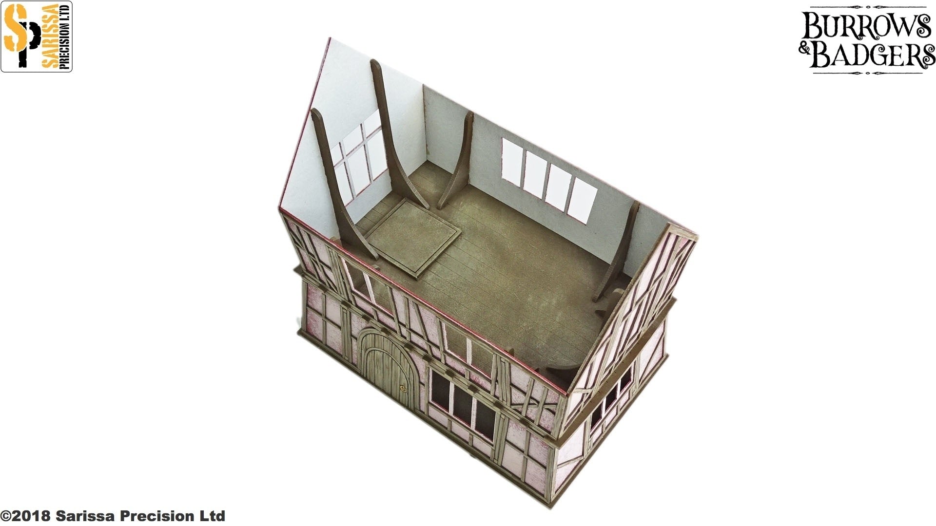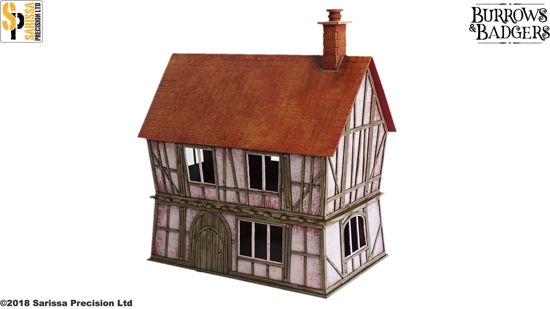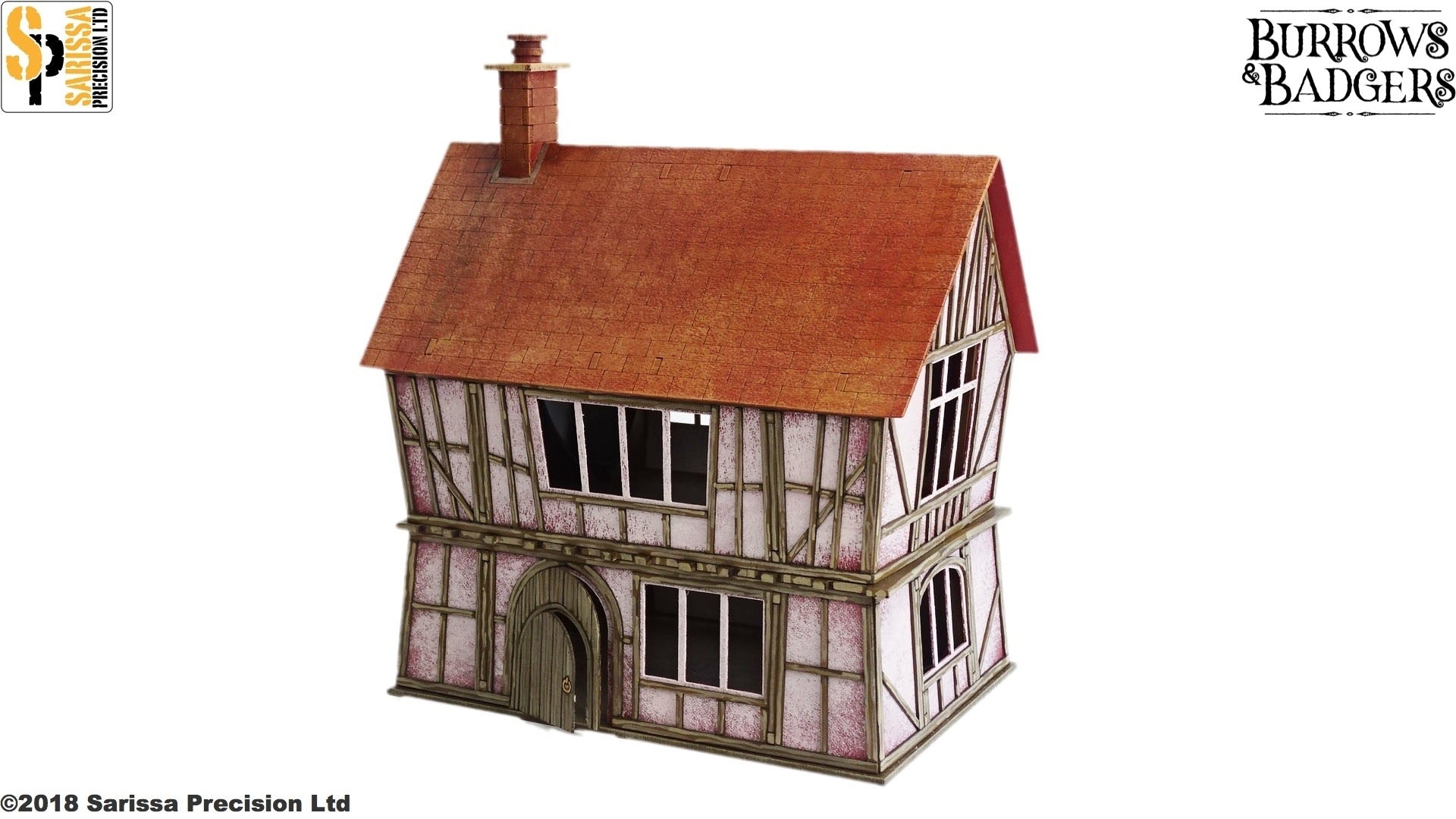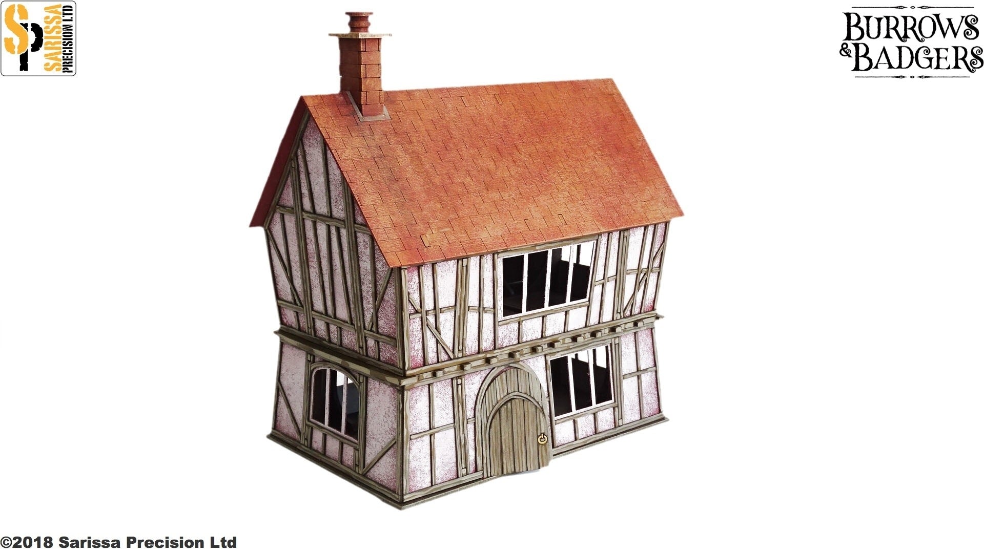 A typical town house of a design found throughout Northymbra's towns and cities. This particular town house, Duntrackin, is the home of the retired but still famous beagle tracker and scout, Rufus Hardpaw, where he hosts a number of regular guests from his adventuring days. Many a nefarious scheme has been plotted inside these walls... Supplied unassembled and unpainted in kit form with full instructions. Any models or accessories shown are for scale purposes only and are not included. |