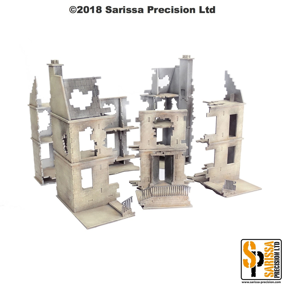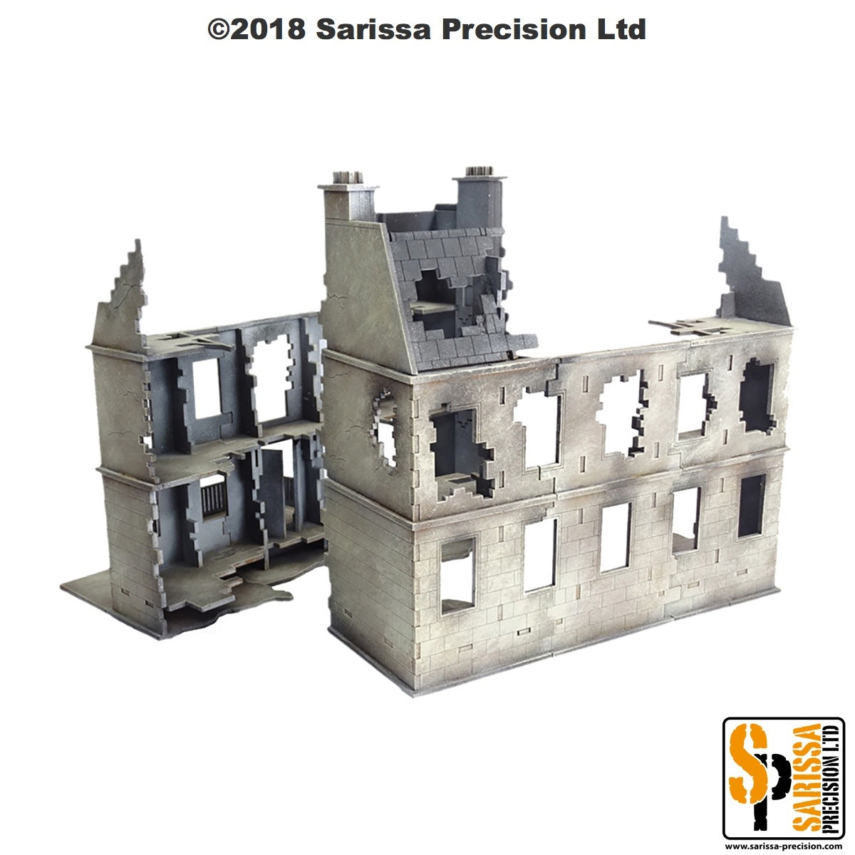 This ruined residential townhouse is perfect for WWII wargames or those played with a modern or post-apocalyptic European setting. Its modular design also allows you to place this kit as one building, or to split it into partially destroyed facades. Supplied unassembled and unpainted in kit form with full instructions. Any models or accessories shown are for scale purposes only and are not included. |