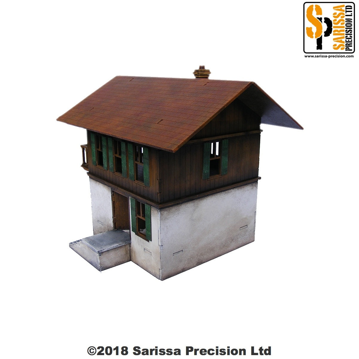 This chalet is typical of those found in the European Alps in the early twentieth century. It would make an ideal addition to any Alpine-themed WWII or pulp/spy wargaming table or diorama.