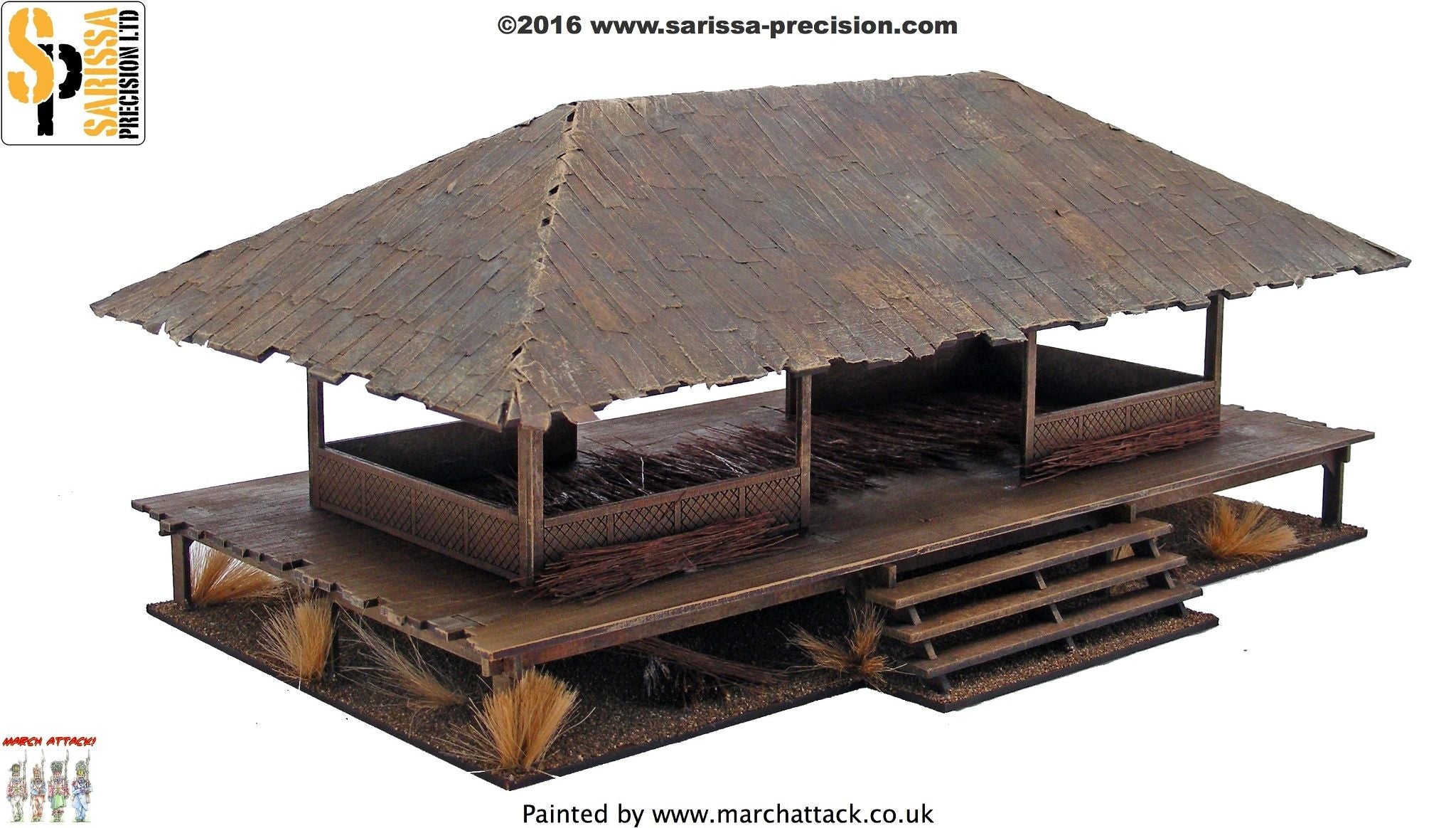 As a focal point of village life, this community house is the perfect centrepiece or objective for any 15mm scale wargaming tables set in the Pacific War, Vietnam or other theatres in the Far East. Supplied unassembled and unpainted in kit form with full instructions. Any models or accessories shown are for scale purposes only and are not included. |
