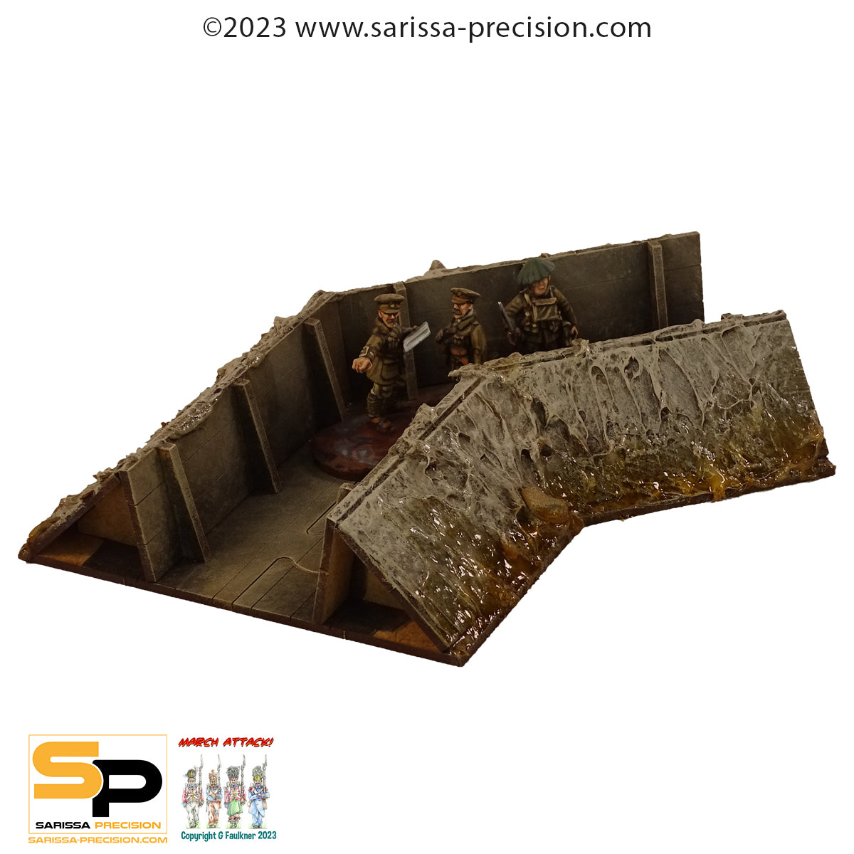 Add heavy firepower to your existing Sarissa Trench System with this Gun Emplacement Expansion. Built to house a large 28mm 10.5 cm leFH 18 howitzer or similar, it slots directly into your trench layout to create a fortified firing line.