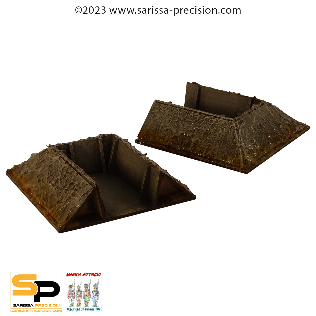 Dig deep and throw the earth high! Add your sandbags and Barbed Wire barricades - Simple to construct and quick to set up for your next battle scenario, these trenches are an ideal fortification to present the trench warfare of WWI and other theatres of war in general.