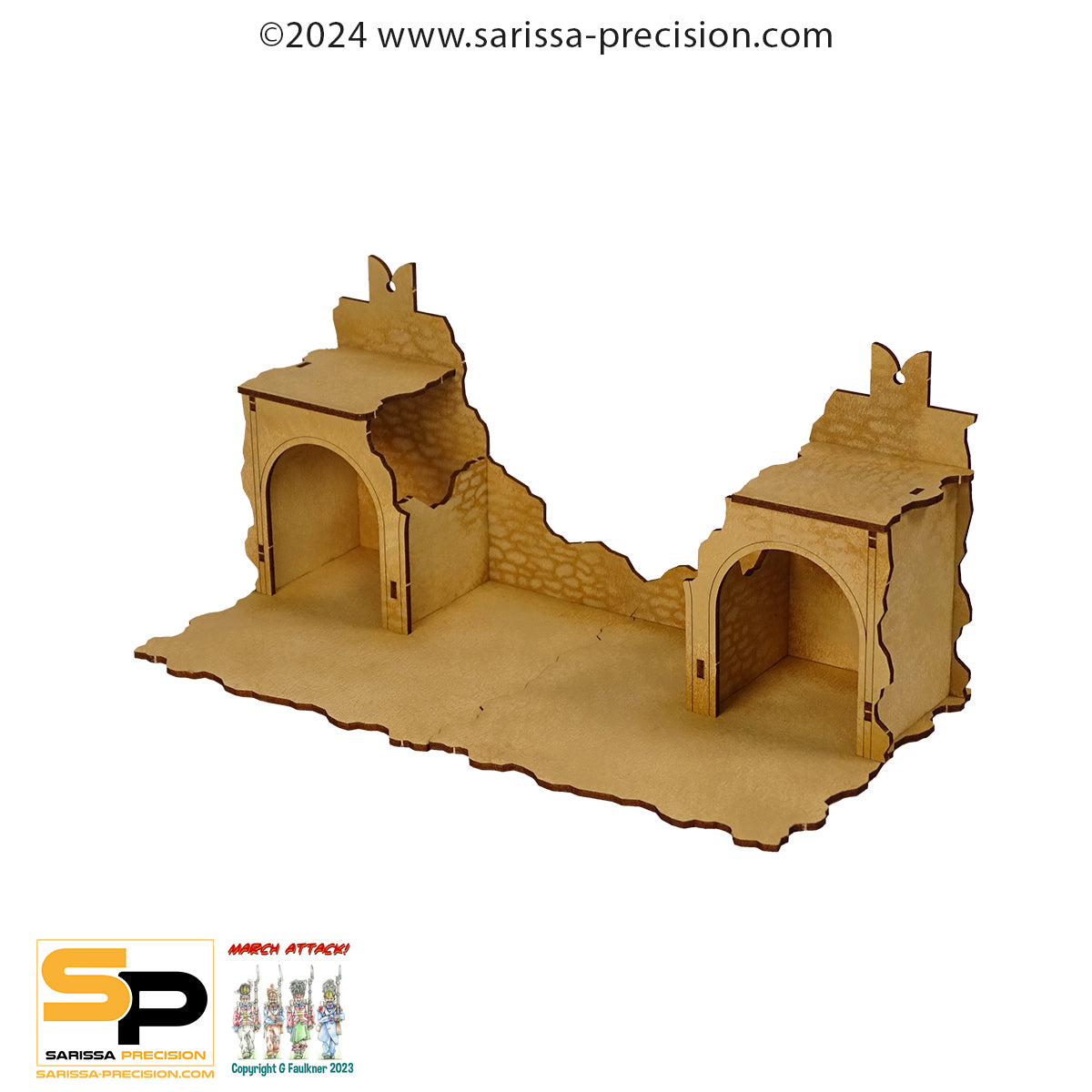 Two ruined walls which work with our Desert Fort Set and components. Perfect for any North African campaign.
