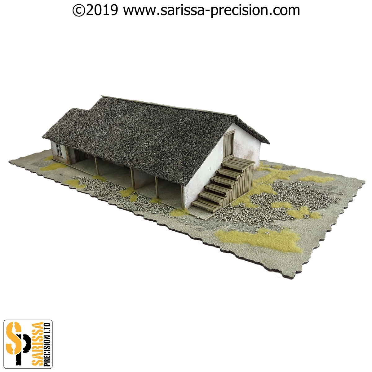 Immortalised in cinema and military history, the mission at Roarke's Drift became the focal point of a battle between just over 150 British and colonial soldiers and thousands of Zulu warriors. The engagement was fought on 22 January, 1879, as part of the Anglo-Zulu War and immediately followed the British defeat at Isandlwana. This time, however, the British secured a famous victory. The store was adjacent to the perimeter but sat just outside of it. The distance between the storehouse and the hospital was roughly 35 yards. Where the hospital contained 11 rooms, the store was made up of about a half dozen. Both structures had loopholes for rifles and thatched roofs. Supplied unassembled and unpainted in kit form with full instructions. Any models or accessories (including thatch and Terrain Tile base) shown are for scale purposes only and are not included.