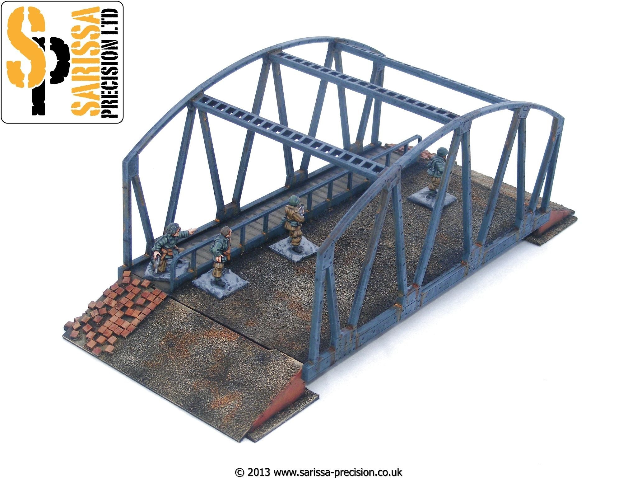 Adopted by the British army in 1932, the Small Box Girder bridge (or SBG) was a small assault bridge usually carried on a tank such as the Churchill Armoured Vehicle. Kit supplied unassembled and unpainted. Can be combined with N029 Expansion Pier set to link two or more bridges together. Any models or accessories shown for scale purposes are not included. |