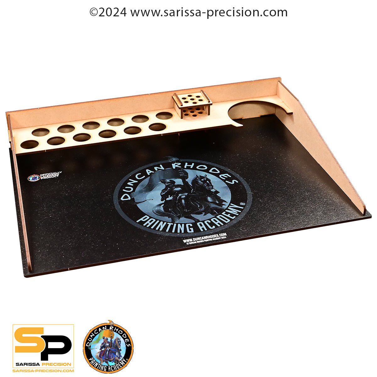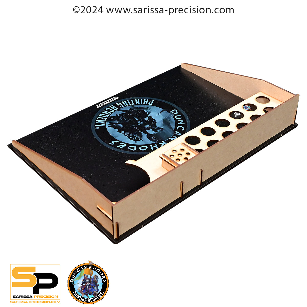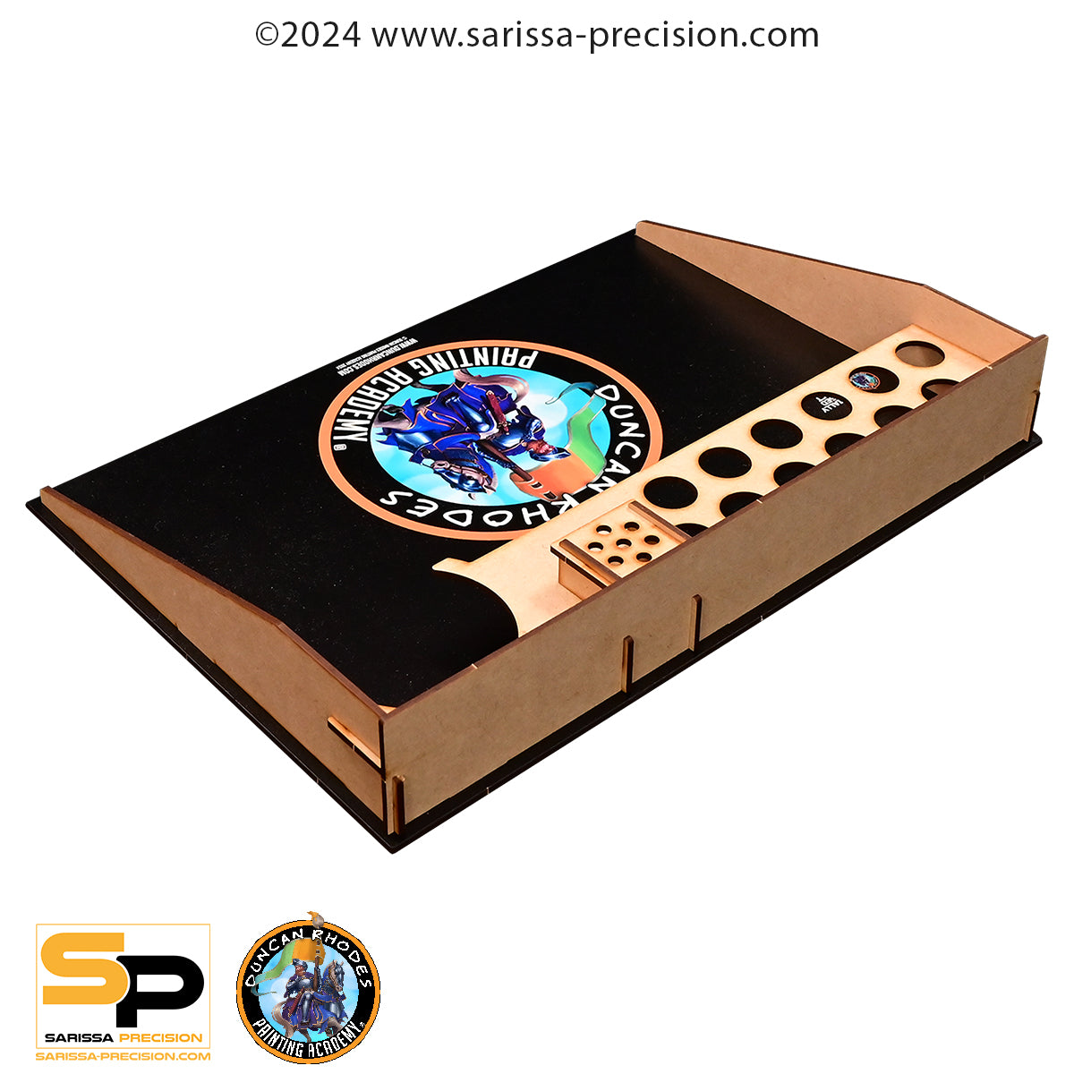 A hobby painting station from Sarissa Precision and Duncan Rhodes Painting Academy, perfect for tucking away in the office or out of the way at home. Keep your painting project safe & contained until you can get back to it.