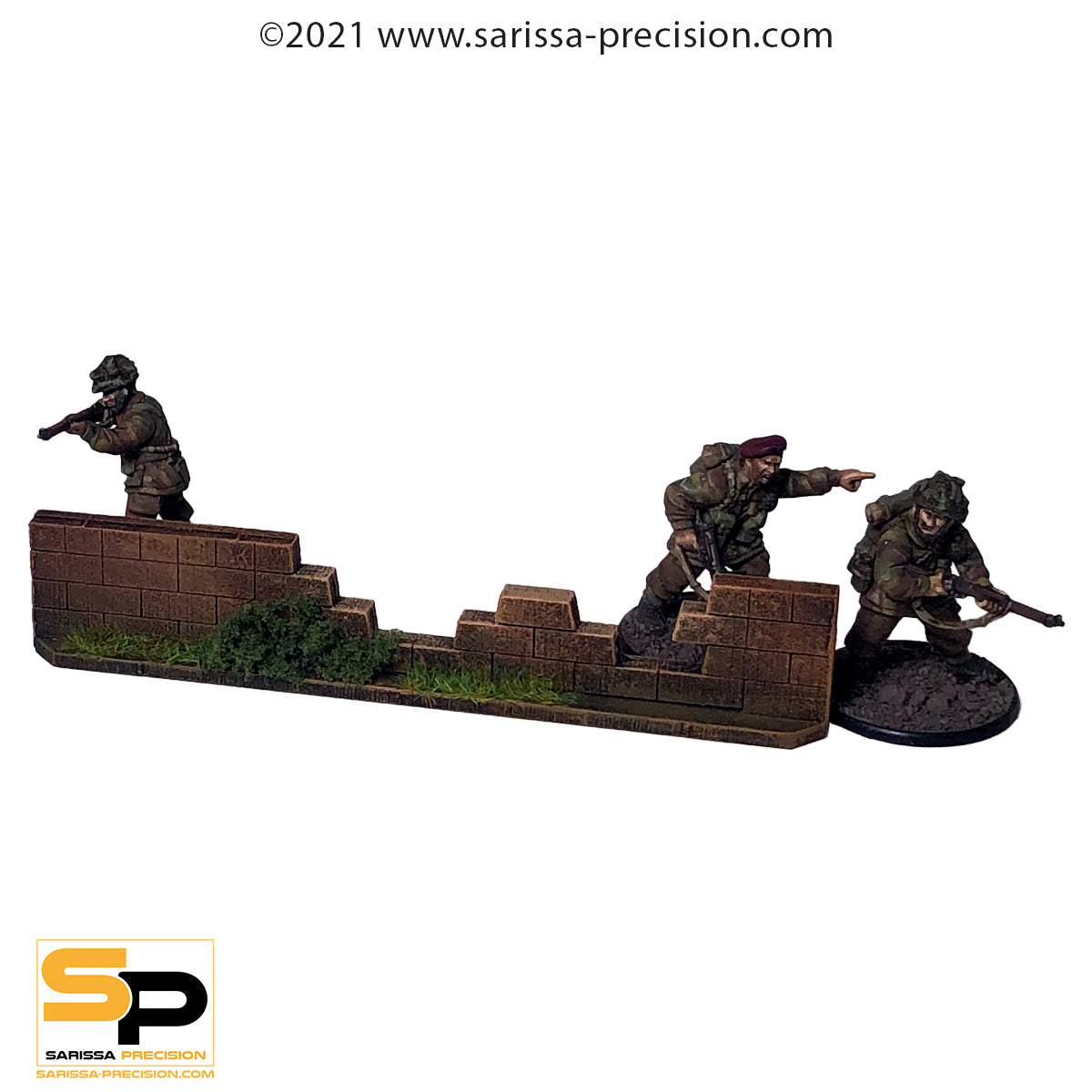 This set of 20 straight, 18mm in height, destroyed low brick walls contains; 8x 50mm long, 8x 100mm long and 4x 200mm long, plus 12 corner pillars to join the walls together.