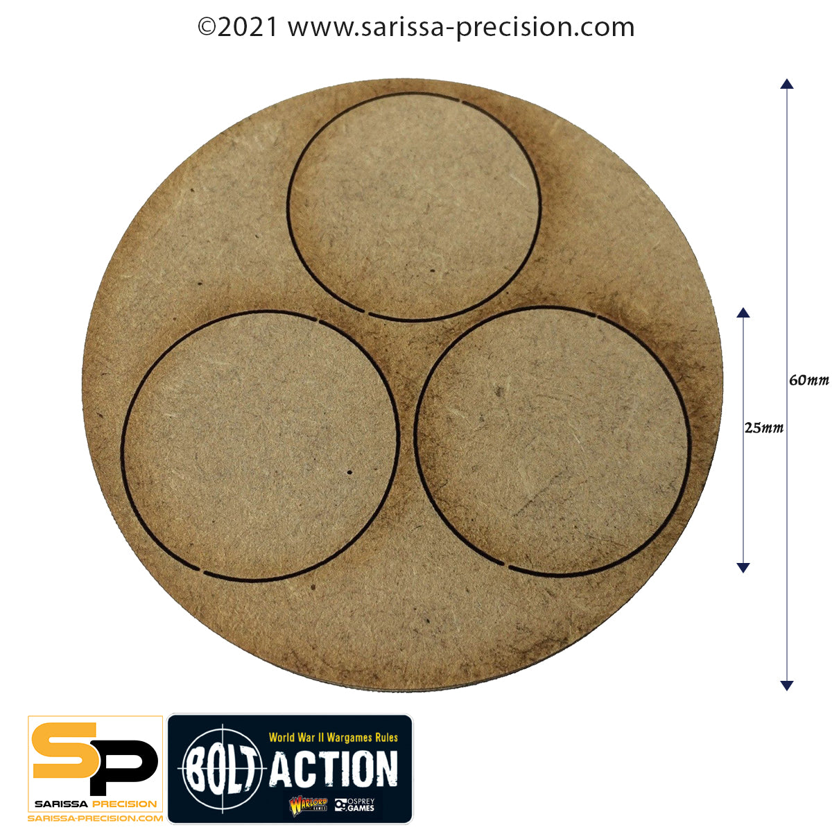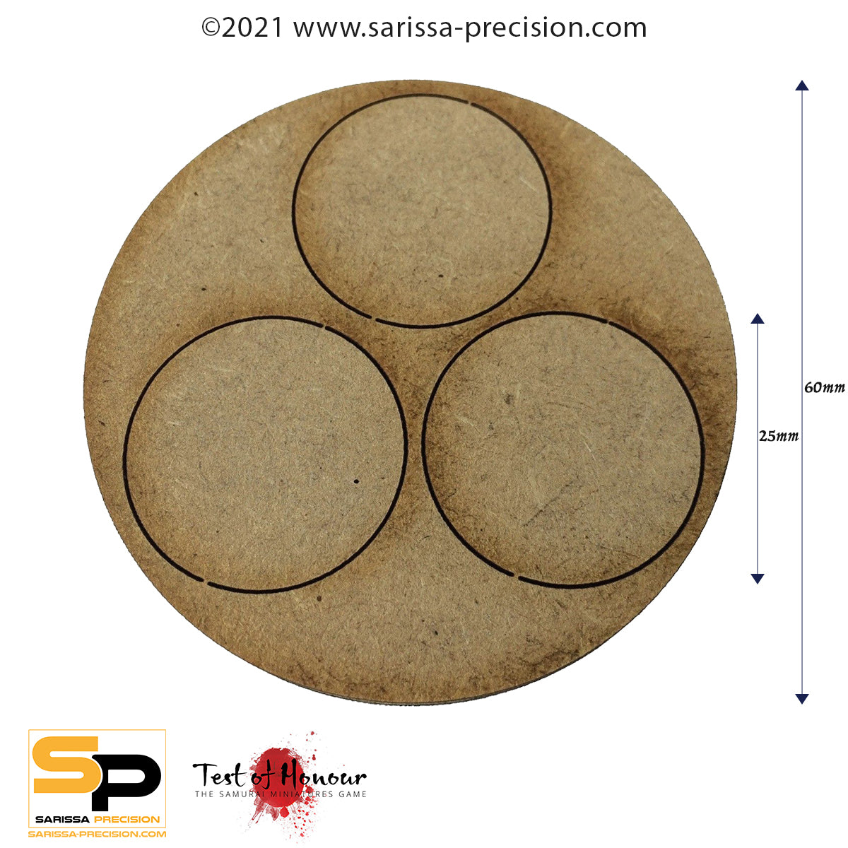 The perfect Team base for a 25mm based set of 3 models. Consisting of a 2mm MDF upper frame and 1mm Greyboard Lower section for a low profile base to fit your teams on.