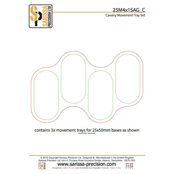 Cavalry Movement Tray Set for 25x50mm based models (bases included) consisting of 2mm MDF upper frame and 1mm Greyboard Lower section for a low profile.