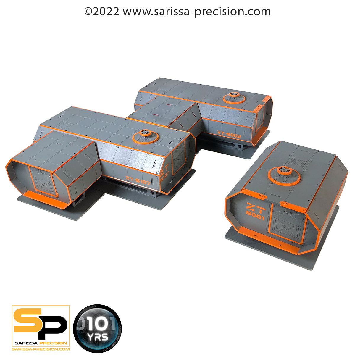 These compact and functional habitation pods would be left behind by dropships to house explorers and prospectors. Combined together they can make a large, functional base from which to operate or take shelter from those alien encounters...