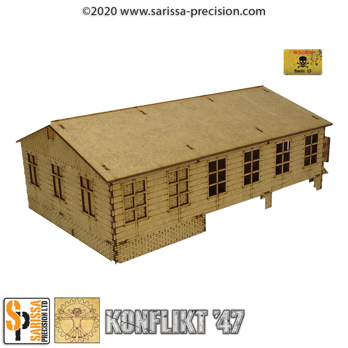 A secret walled off bunker is hidden within the walls of this innocuous building ensuring it blends in with the other barracks and P.O.W buildings, perfect for any scenario for Konflikt'47 from Clockwork Goblin Miniatures, or perhaps any other sci-fi, modern or pulp game systems.