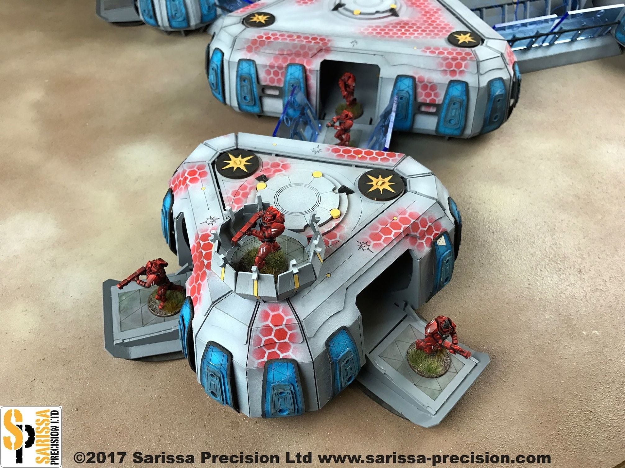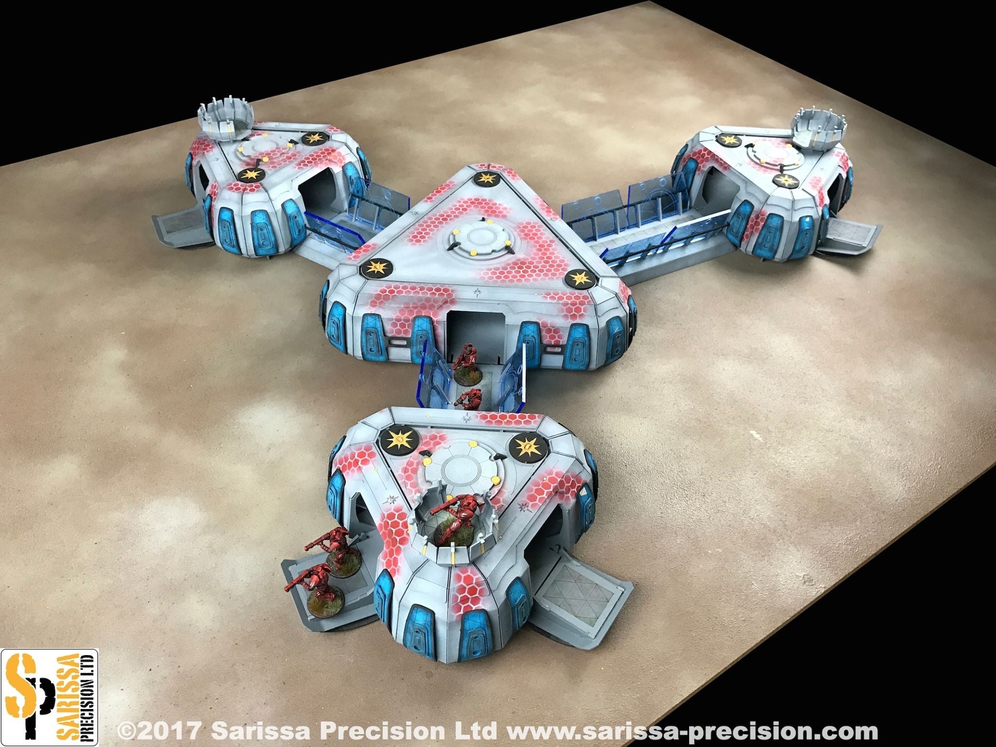 Developed by the Algoryns to enable the insertion of ground forces amongst hostile forces, these fortresses are dropped from orbit into the target territory. They are composed of three Bastion Modules and a central Command Module, all connected by Kinetic Walkways and crowned with an array of Defence Points. Supplied unassembled and unpainted in kit form with full instructions. Warlord Games Algoryn miniatures shown are for scale purposes only and are not included. |