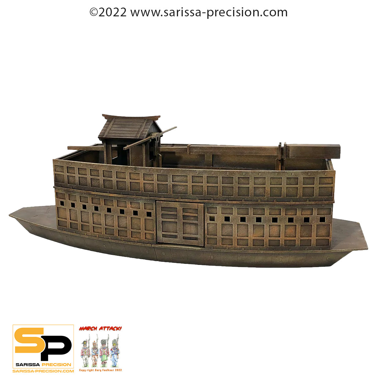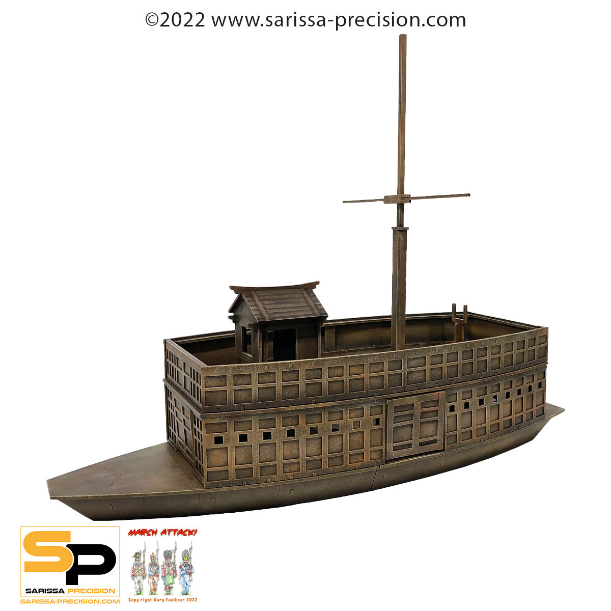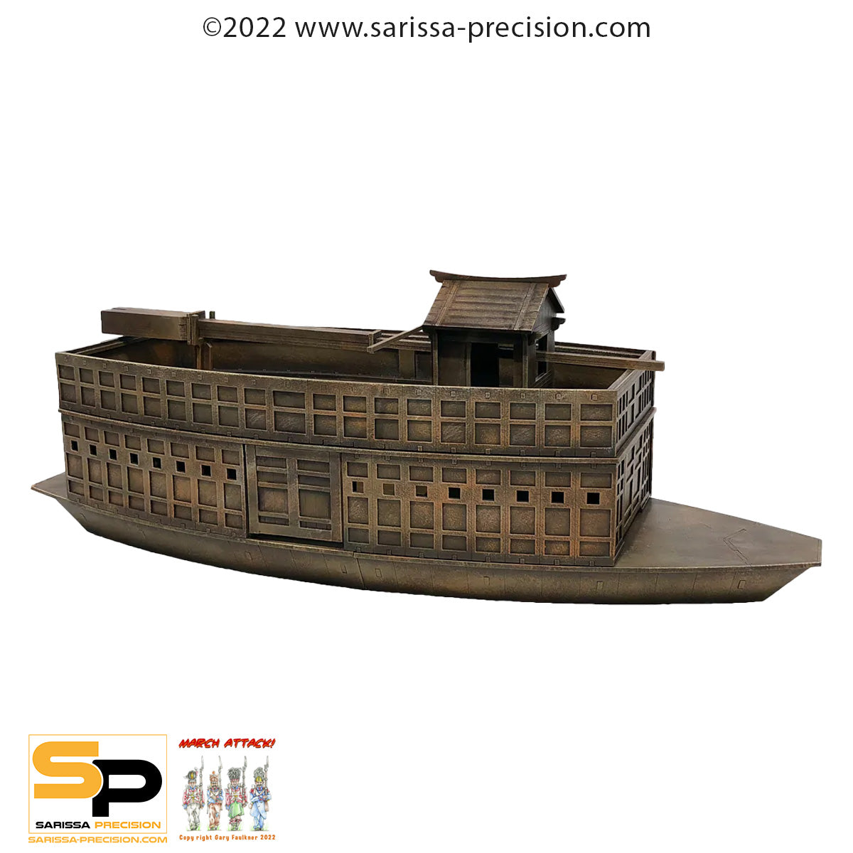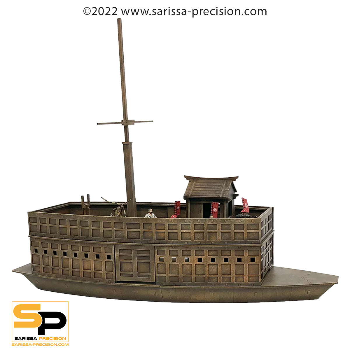 Created during the Sengoku period, these impressive boats were used by rival shoguns to impose their supremacy on one another. Designed as floating fortresses rather than boats, these huge vessels were usually limited to coastal use. Most were lightly armed with cannons and arquebuses, and some even sported iron cladding. Supplied unassembled and unpainted in kit form with full instructions. Any models or accessories shown are for scale purposes only and are not included. |