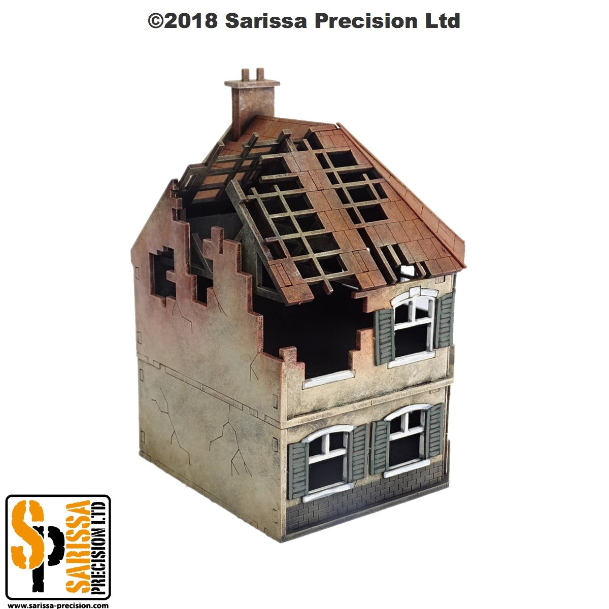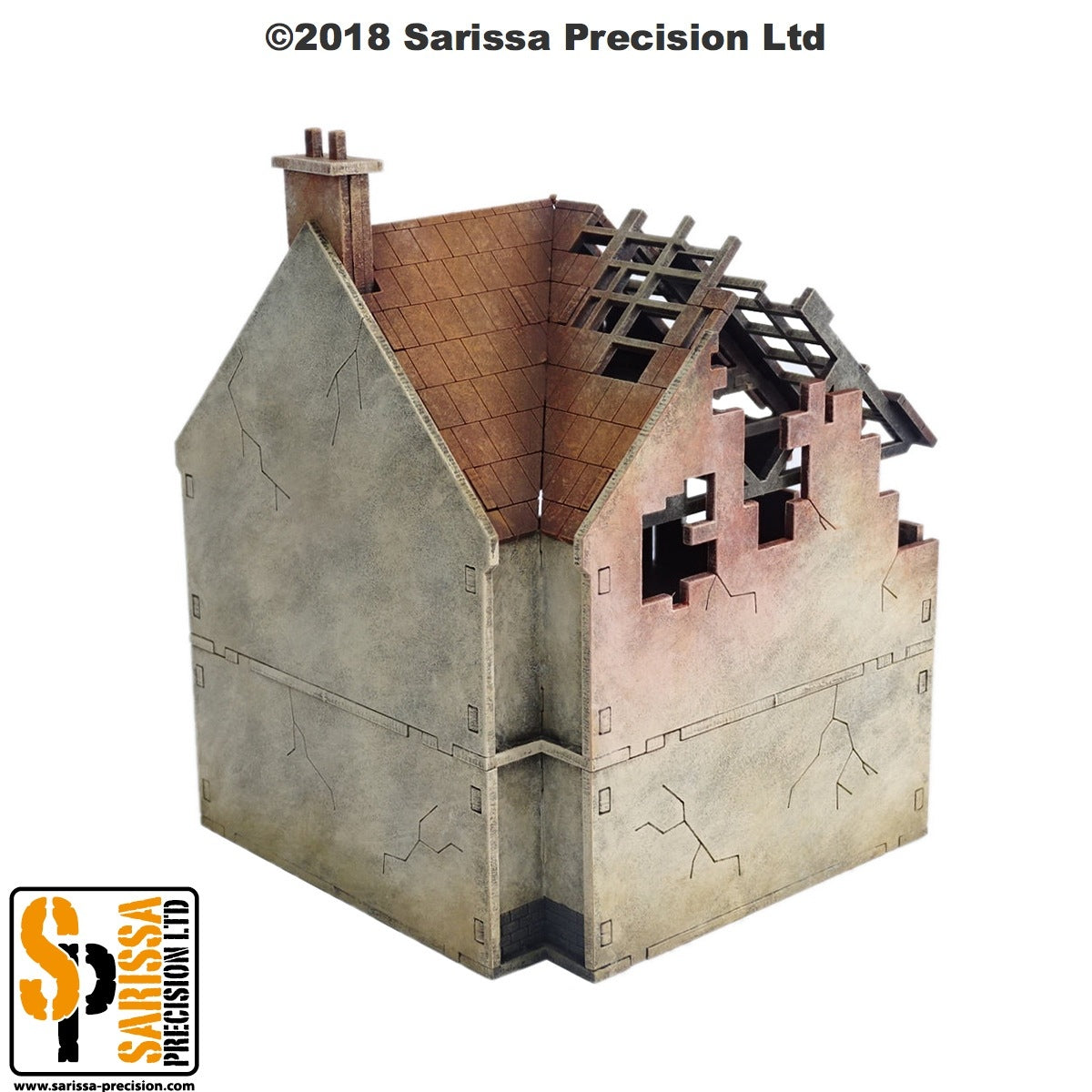 | Contents | 1 x 15mm scale destroyed corner terrace house | ||||