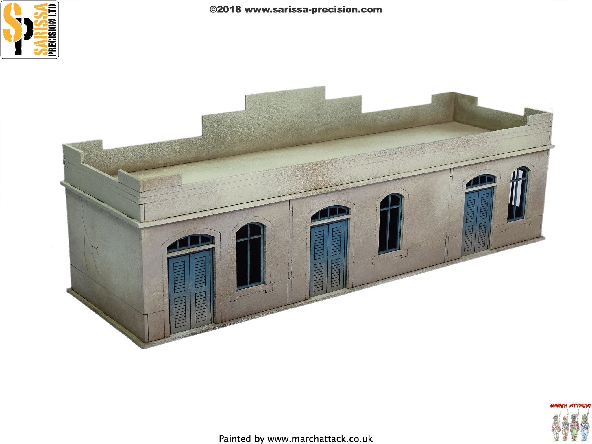 This versatile single-storey building is perfect not only for WWII wargames set in North Africa, but also those set in the modern Middle East or the colonial era. Supplied unassembled and unpainted in kit form with full instructions. Any models or accessories shown are for scale purposes only and are not included. |