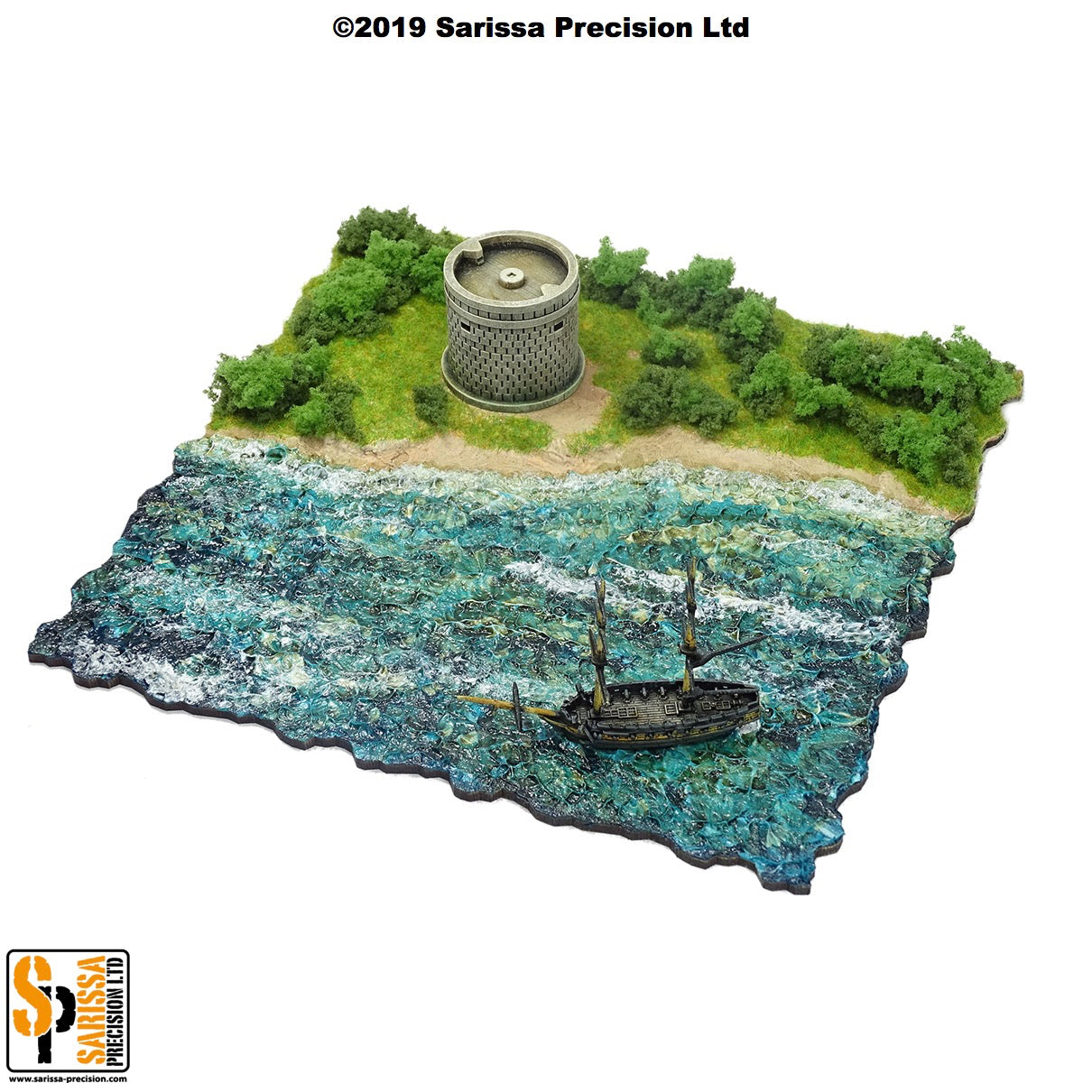 Supplied unassembled and unpainted in kit form. Requires assembly and comes with full instructions. Any models and accessories shown are for scale purposes and are not included. Shown on terrain tile with Warlord Games Plastic Frigate.