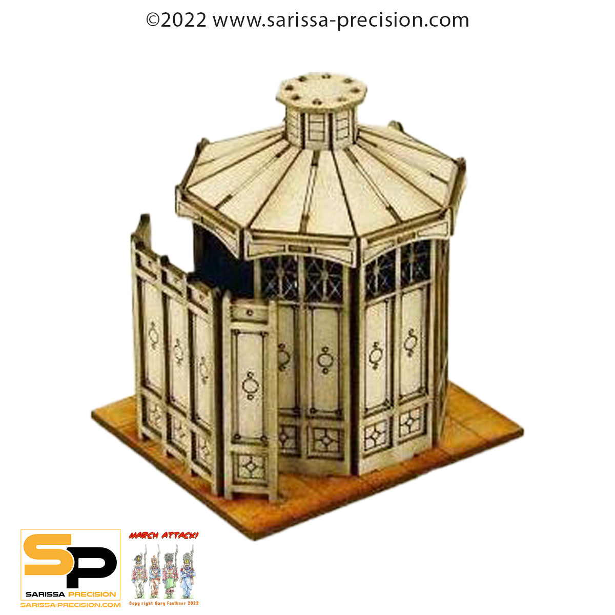 Common in Europe, the pissoir was invented in France in 1830. An alternative to the toilet block, it allows for discreet urination behind—and the placing of advertising posters on—a screen. Supplied unassembled and unpainted in kit form with full instructions. Any models or accessories shown are for scale purposes only and are not included. |