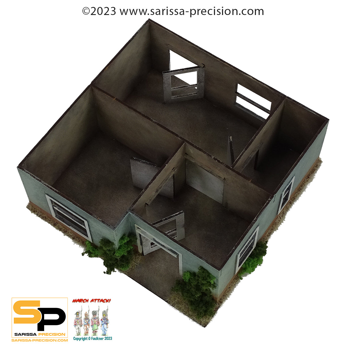 Take the roof off and inside you'll have the familiar surroundings of an entrance and three separate rooms with working doors.
