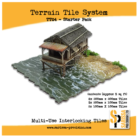 These terrain tiles are designed with interlocking edges which enable them to be positioned together neatly. The design also allows the tiles to be offset by 10cm. They are self-locking as each group of tiles are placed to form a game scenario.